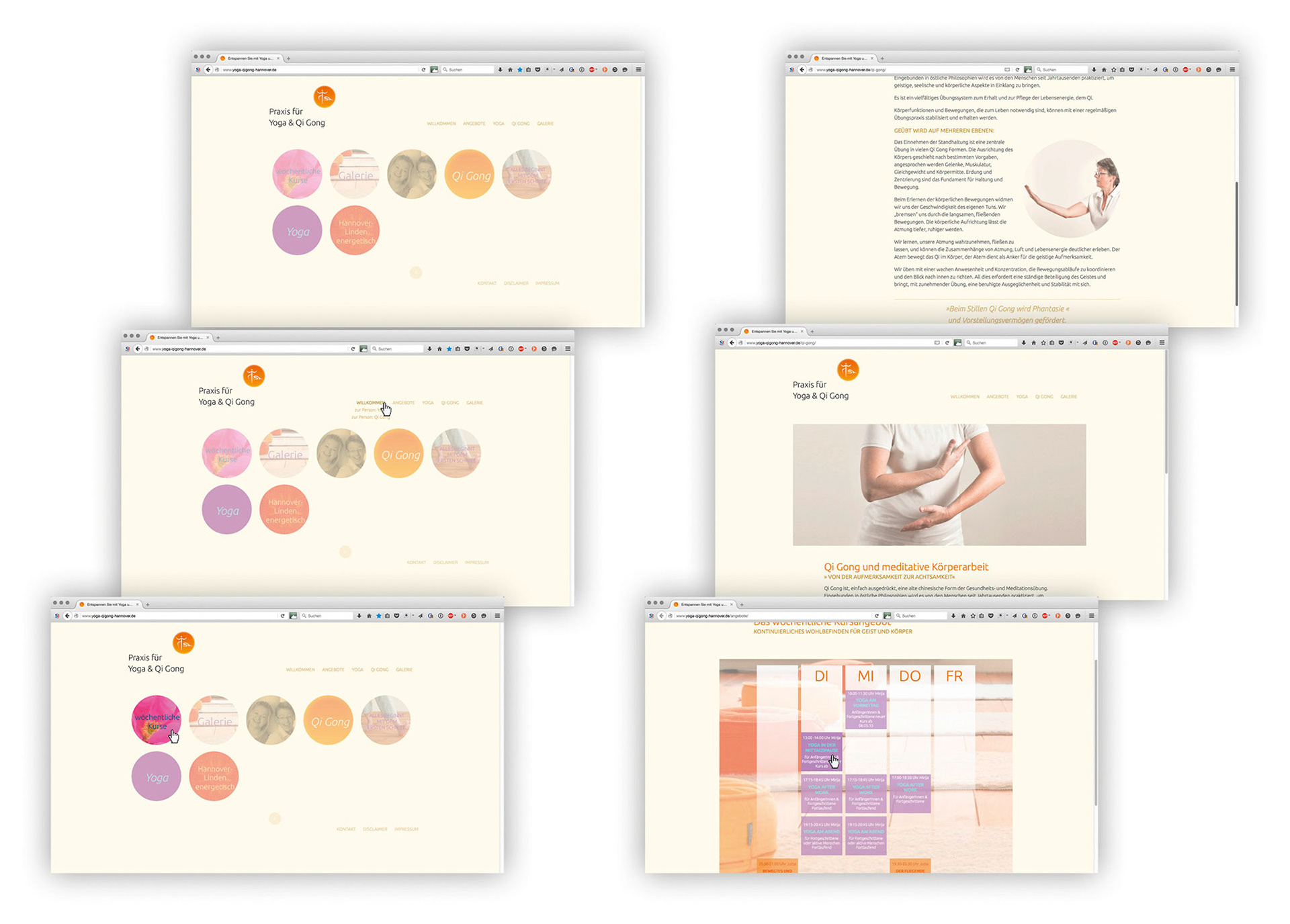 Sanfte Übergänge, zarte Farben, runde Formen, die das Wohlbefinden auch visuell erlebbar machen. Das fängt schon auf der Website der Praxis für Qi Gong und Yoga an.